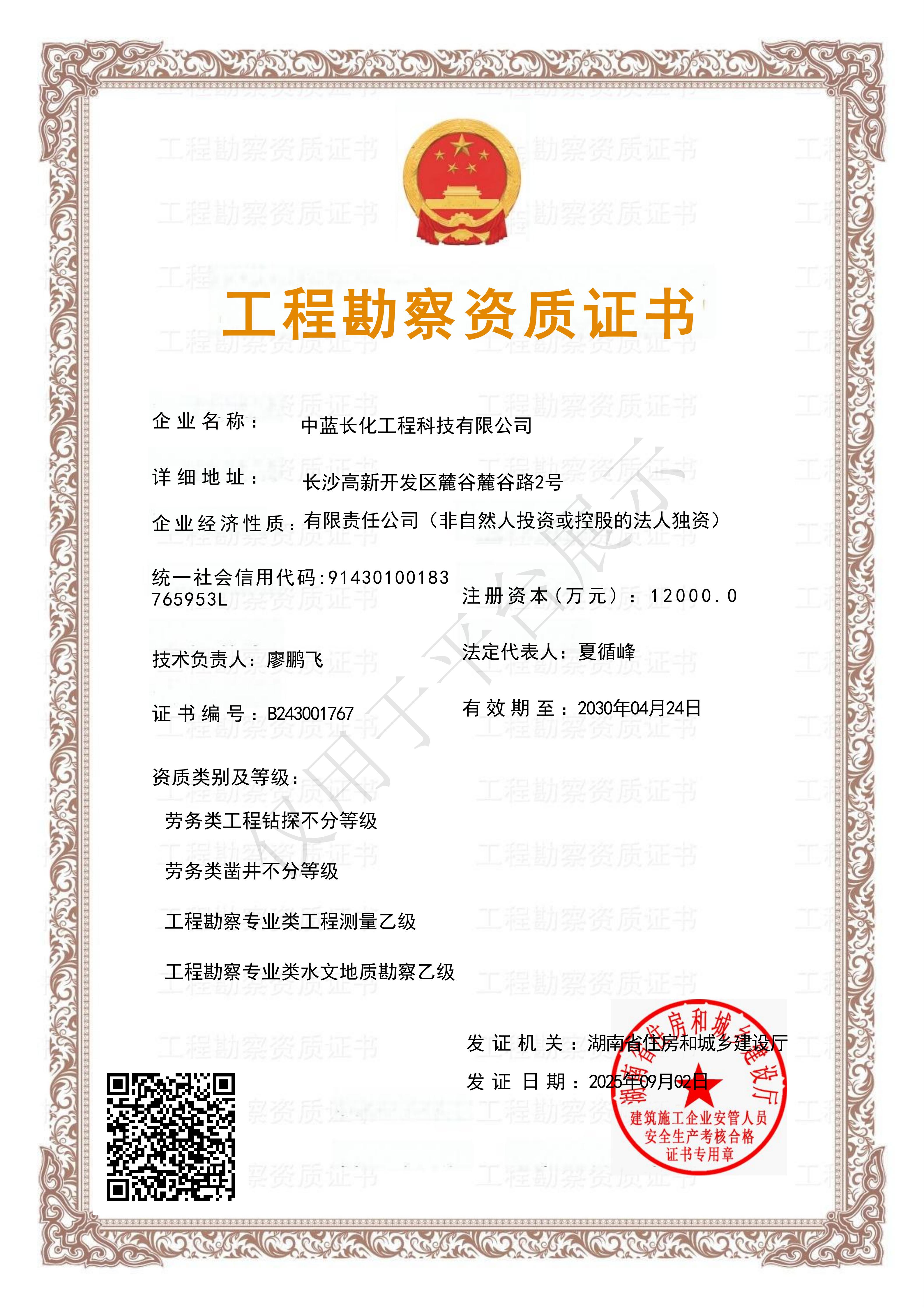 工程勘察资质证书