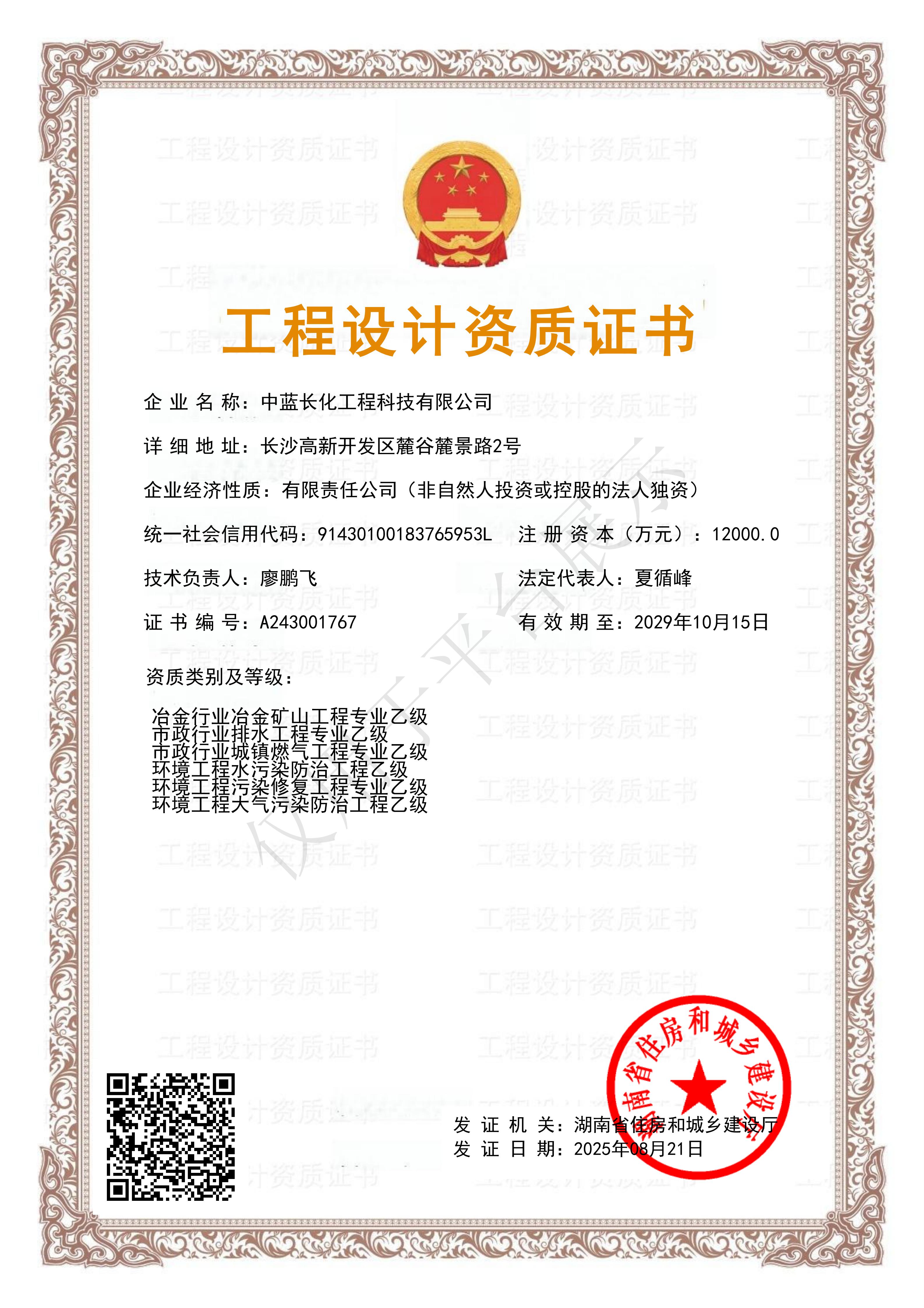 工程设计资质证书