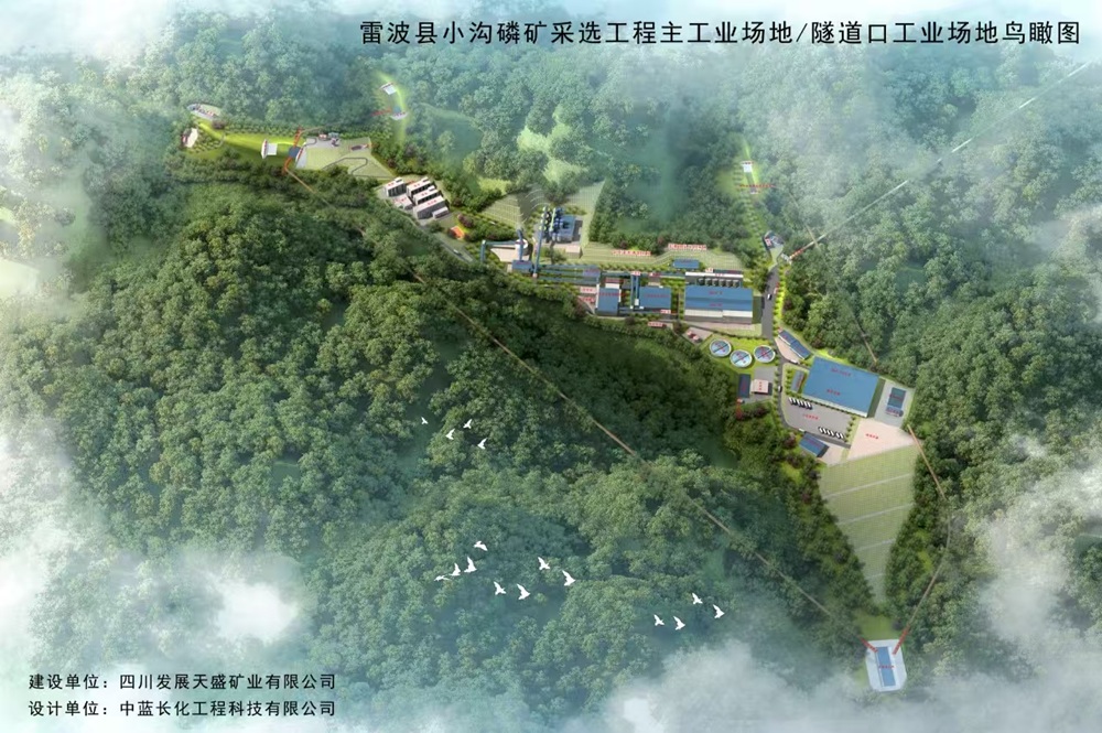 小沟磷矿550万吨/年采选工程项目位置:雷波县上田坝镇产能:550万吨/年雷波县小沟磷矿建设投资超50亿元,是国内化工矿山行业生产规模最大的采、选、充一体化磷矿项目。矿山采用斜坡道+胶带斜井联合开拓,倾角较缓的矿段采用条带式充填采矿法,倾角较大矿段采用分段空场嗣后充填采矿法。项目开采深度为2850m-992m,资源量约4亿吨,矿层倾角为4°-55°,Ⅱ-1矿层平均厚度5.93m,Ⅱ-2矿层平均厚度4.52m。采用平硐+斜井+斜坡道联合开拓方式,浅孔+中深孔回采工艺,采出矿石通过铲运机+无轨卡车倒运到中段溜井,通过分支胶带、主胶带接力运出地表,经光电选+重介选+浮选工艺、全尾砂充填工艺,服务年限52年。